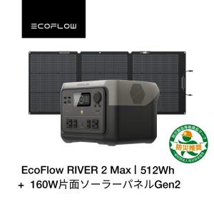 ポータブル電源 ソーラーパネル セット EcoFlow RIVER 2 Max 512Wh+160W 太陽光発電 大容量 蓄電池 リン酸鉄 急速充電 キャンプ EcoFlow エコフロー