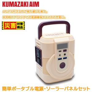 クマザキエイム これだけで安心!簡単ポータブル電源・ソーラーパネルセット ベージュ×ブラウン 蓄電池 ソーラーパネル セット 家庭用 正規品 【災害対策商品】