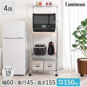 ルミナス スチールラック 幅60 奥行45 高さ155 4段 ラック レンジ台 キッチンラック 木棚 アルミ MD6015-4MR