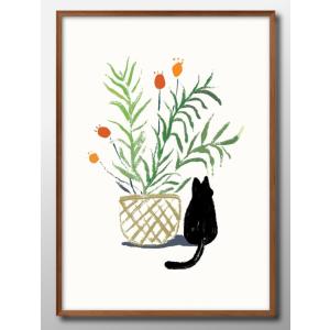 ポスター 12077猫 ネコ 黒猫 花 ボタニカル 絵画 インテリア A3サイズ アート 新築祝い ギフト 模様替え 北欧 管理ID: