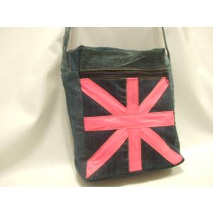 横浜最新 魅惑のデニムショルダーバッグ♪リメイク手作りバッグ 横巾約22cm 縦27cm メンズレディース ピンク柄 送料290円バッグ27msyo