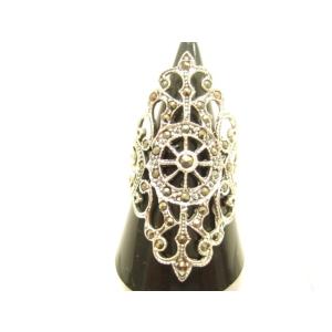 横浜最新 シルバー925SILVER 銀♪魅惑のアラベスク マーカサイト大型リング 17号 メンズレディース 送料290円アンティーク指輪b98syo