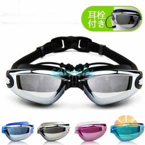 スイミングゴーグル 曇り止め 防水 UVカット 水漏れ防止 ベルト調節可 水着 スイムゴーグル 耳栓 付き 男女兼用
