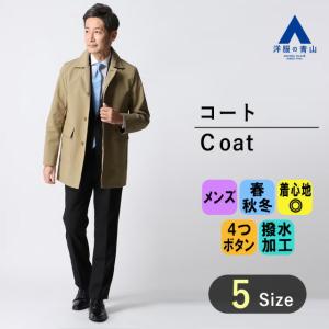 【洋服の青山】ステンカラーコート メンズ 春秋冬 ベージュ系 長袖 スタイリッシュ 撥水加工 動きやすい ビジネス カジュアル 仕事 通勤 スプリング 春