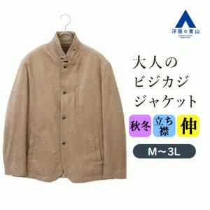 【洋服の青山】スエード スタンドカラー コンバーチブルジャケット メンズ 秋冬 ベージュ 無地 ストレッチ 動きやすい 立ち襟 胸ポケット ノーベント ビジカジ