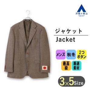 【洋服の青山】プレミアム ウール100% ジャケット メンズ ゆったり 秋冬用 ブラウン 茶色 チェック柄 大きいサイズ 2ボタン サイドベンツ 暖かい 動きやすい