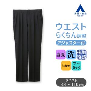 【洋服の青山】スラックス メンズ ゆったり 盛夏 ネイビー 紺 ストライプ 大きいサイズ ツータック アジャスター 涼しい 洗える 接触冷感 ひんやり ビジネス