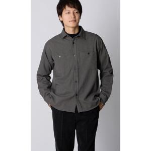 【洋服の青山】オールシーズン グレー系 CPOハオリシャツ【千鳥格子】 長袖 レギュラーカラー 両胸ポケット ボックスプリーツ