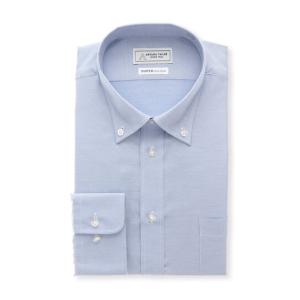 【洋服の青山】ブルー サックス 青 ボタンダウン ワイシャツ 長袖 春夏秋冬 胸ポケット トップス Yシャツ カッターシャツ メンズシャツ ビジネス 通勤 出張 男性
