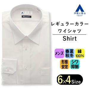 【洋服の青山】アイロン不要 綿100% ワイシャツ メンズ 長袖 オールシーズン ホワイト 白無地 レギュラーカラー ノンアイロン ノーアイロン 形態安定