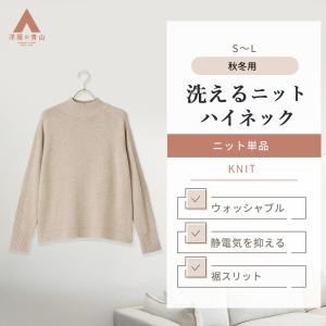 【洋服の青山】洗える ハイネックニット ニット レディース 長袖 秋冬 ベージュ 織柄 セーター 静電気防止 裾スリット リブ編み スーツ インナー 暖かい