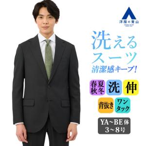 【洋服の青山】スーツ メンズ スリム オールシーズン ブラック 黒無地 スタイリッシュ 2ボタン 背抜き ワンタック 動きやすい ストレッチ 洗える 大きいサイズ