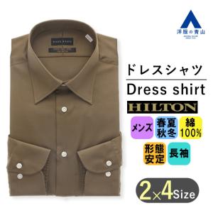 【洋服の青山】綿100% 形態安定 ブラウン 茶色 レギュラーカラースタイリッシュ ワイシャツ HILTON メンズ 長袖 無地 春夏 秋冬 シワになりにくい