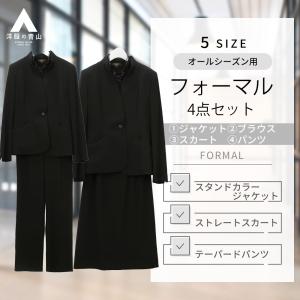 【洋服の青山】レディース フォーマルスーツ 4点セット《ジャケット+ブラウス+スカート+パンツ》 ブラック系 スタンドカラー PARISSIMA YUKI TORII 817