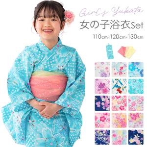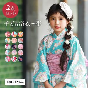 キッズ浴衣 2点セット 浴衣 兵児帯 セット 子供浴衣 女の子 レトロ おしゃれ 可愛い かわいい お祭り 花火 夏 100cm 110cm 120cm
