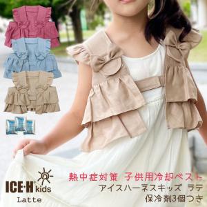 こども用 暑さ対策 熱中症対策グッズ クールベスト 冷却ベスト アイスハーネス キッズ ラテ フリル リボン付き 保冷剤3個セット付き