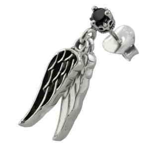 ピアス メンズ レディース シルバー925 羽 フェザー ドロップピアス 揺れる 羽根 翼 czダイヤモンド メンズピアス 片耳用 (1個売り)