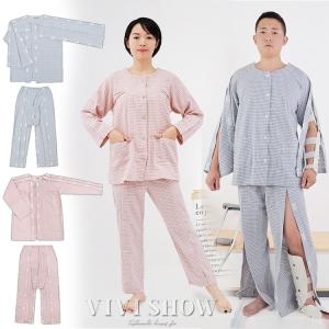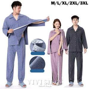 介護パジャマ メンズ レディース 何か所もオープン マジックテープ 入院服 長袖 介護服 寝たきり 点滴 フルオープン 骨折 病院用 入院