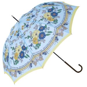 ビコーズ スカーフプリントサックス 青 ブルー系 フラワー 花柄 傘 レディース 長傘 雨傘 日傘 UVカット 遮光 晴雨兼用 大きい 丈夫 手開きタイプ