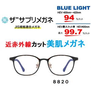 ザ”サプリメガネ8820 度無し 美肌メガネ ,美容業界でシミ対策として注目の近赤外線を約50%カット ブルーライトカット テスター付