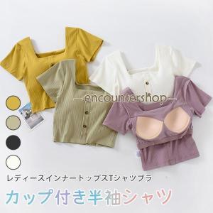 tシャツ レディース 半袖 無地 カップ付き 半袖tシャツ 短め 夏 カットソー トップス おしゃれ 10代 20代 30代 40代 50代