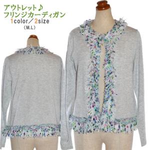 フリンジ カーディガン P3 送料無料 メール便限定 訳有り アウトレット ネームカット 長袖 冷房対策 冷え防止 通勤 仕事 事務 オフィス グレー M L