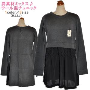 ニット チュニック 異素材切替え レディース 訳有り アウトレット ネームカット ニットソー ゆったり おしゃれ お出かけ チャコール グレー 黒 M L LL