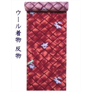 ウール着物 反物 u-25 エンジ地・ユリ柄【訳有り】