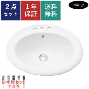 洗面ボウル 埋め込み 陶器 訳あり商品 三穴 手洗い鉢 オーバーフロー有り W475×D415×H190 INK-0401029H