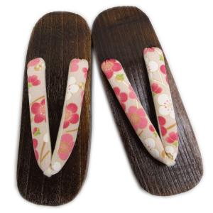 【訳有り 少難あり】 下駄 桐 女性用 大きいサイズ LL 25.5cm 3L 26.5cm 焼桐茶台 ベージュ地梅枝 浴衣 ゆかた 甚平 2L