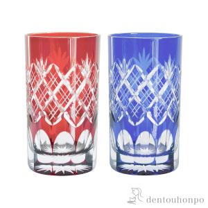 江戸切子 重ね矢来菊底 タンブラー ペア ( 田島硝子 木箱名入れ有料 退職祝い 定年 ビールグラス ビアグラス 保温 保冷 人気 セット 江戸切子 結婚 出産 )