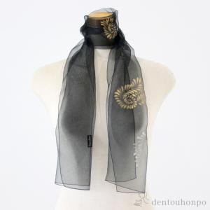 天女の羽衣 加賀友禅染ショール 手描き シェル(黒) 小 ( 工房久恒 退職祝い 定年 ストール 結婚式 大判 パーティー おしゃれ 加賀友禅 結婚 出産 内祝い )