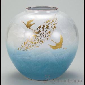 九谷焼 花瓶 銀彩金鶴 7号 ( 木箱名入れ有料 木札名入れ有料 退職祝い 定年 ガラス フラワーベース 花器 一輪挿し おすすめ 九谷焼 周年 創立 上場 竣工 )