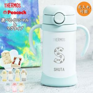 ストローマグ ベビーマグ 出産祝い ベビー 名入れ 水筒 サーモス ベビーマグ ピーコック 子供 350ml イニシャル のりもの 真空断熱 THERMOS 保冷専用