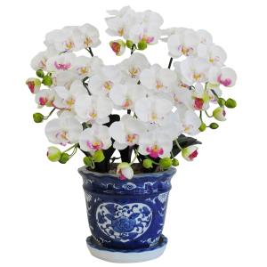 造花の胡蝶蘭 トラッド鉢植『 S(普通)サイズ-5本立 /白(リップ薄赤)色 』 光触媒 /空気清浄 アートフラワー