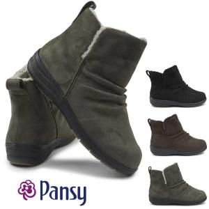 パンジー レディース ブーツ 4690 ショート 幅広 5E 生活防水 ファスナーボア ゆったり