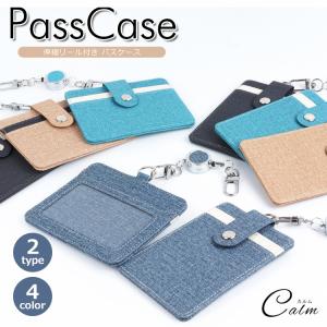 パスケース リール付き 定期入れ IDカード リール ジーンズ メンズ レディース 脱落防止バンド付 通勤 通学