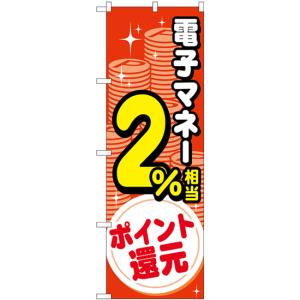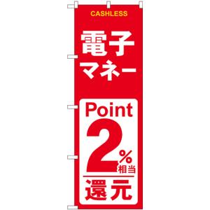 のぼり旗 電子マネー2%還元 赤白 GNB-3521