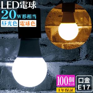 LED電球 5W 20W形 E17 一般電球 電球色 昼白色 ledランプ 省エネ 100個セット