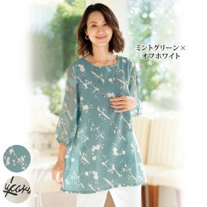 ミセスファッション おしゃれ シアー チュニック レディース 春夏 シアー袖プリントチュニック 40代 50代 60代 70代 シニアファッション 服