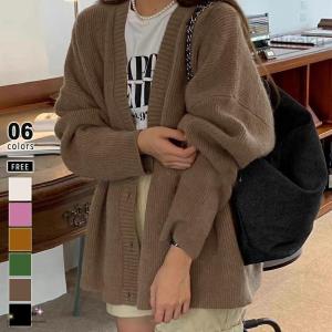 カーディガン レディース オーバーサイズ ニット vネック ニットカーディガン トップス ドロップショルダー 長袖 アウター ニットセーター 体型カバー リブニ