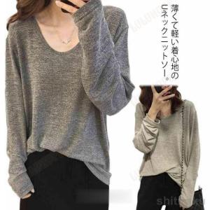 レディース 韓国ファッション ニット Vネック シンプル 無地 セーター 長袖 トップス オーバーサイズ 大人女子 フェミニン 普段着 ブルー ベージュ パープル