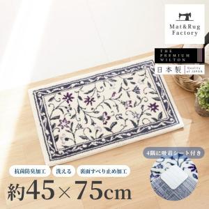 玄関マット 大きめ おしゃれ 室内 屋内 風水 モンテサラサ 約45×75cm コーナー吸着つき 吸着シート 洗える 日本製 ウィルトン織り 更紗 オカ