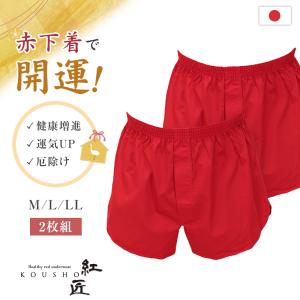 メンズ 赤いトランクス 2枚セット M〜LL (前開き ボトムス 肌着 インナー パンツ 風水 運 レッド 男性 紳士 綿100% コットン M L LL)(送料無料)