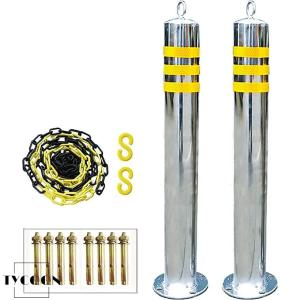 2個 駐車場 ポール 車止め 駐車禁止 駐車場ポール ステンレス鋼 セキュリティポストとプラスチックチェーンセット吊り下げリング付き反射テープバリア 衝突防止