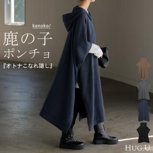 ポンチョ 鹿の子 ベスト トップス ロング ベスト ニットベスト セーター レイヤード 重ね着 Vネック フード