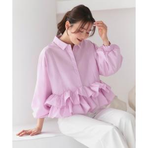 ブラウス シャツ 「再販決定」フリルチュールスリーブビジュー釦ブラウス レディース
