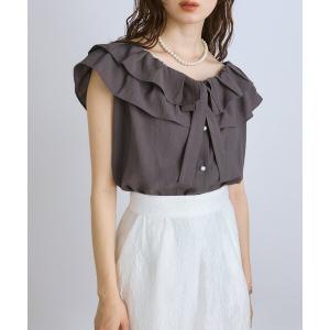ブラウス シャツ 「最強愛され」ギャザーフリルリボンノースリブラウス レディース