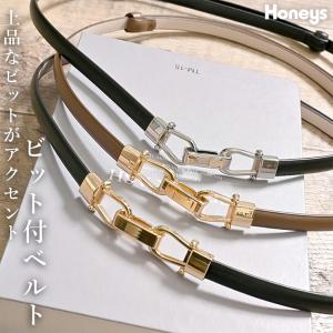 ベルト 合皮 ビット アジャスター 無地 セレモニー フォーマル 細 フェミニン レディース Honeys ハニーズ ビット付スライドベルト