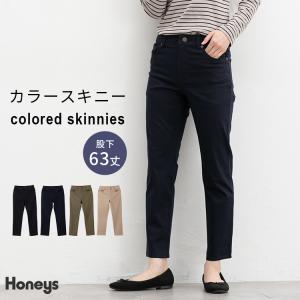 ボトムス パンツ カラースキニーパンツ ロングパンツ 股下63cm 綿混 USAコットン ストレッチ レディース Honeys ハニーズ カラースキニー(股下63cm)